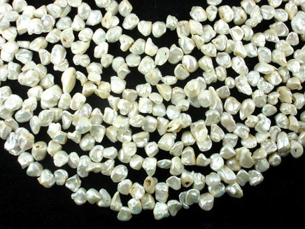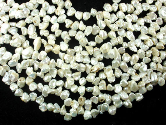 Name: Fresh Water Pearl Shape: Top drilled, Keshi Size: Approx. 7-15mm, 15 Inch, Full strand, Hole 0.5mm Color: White with AB